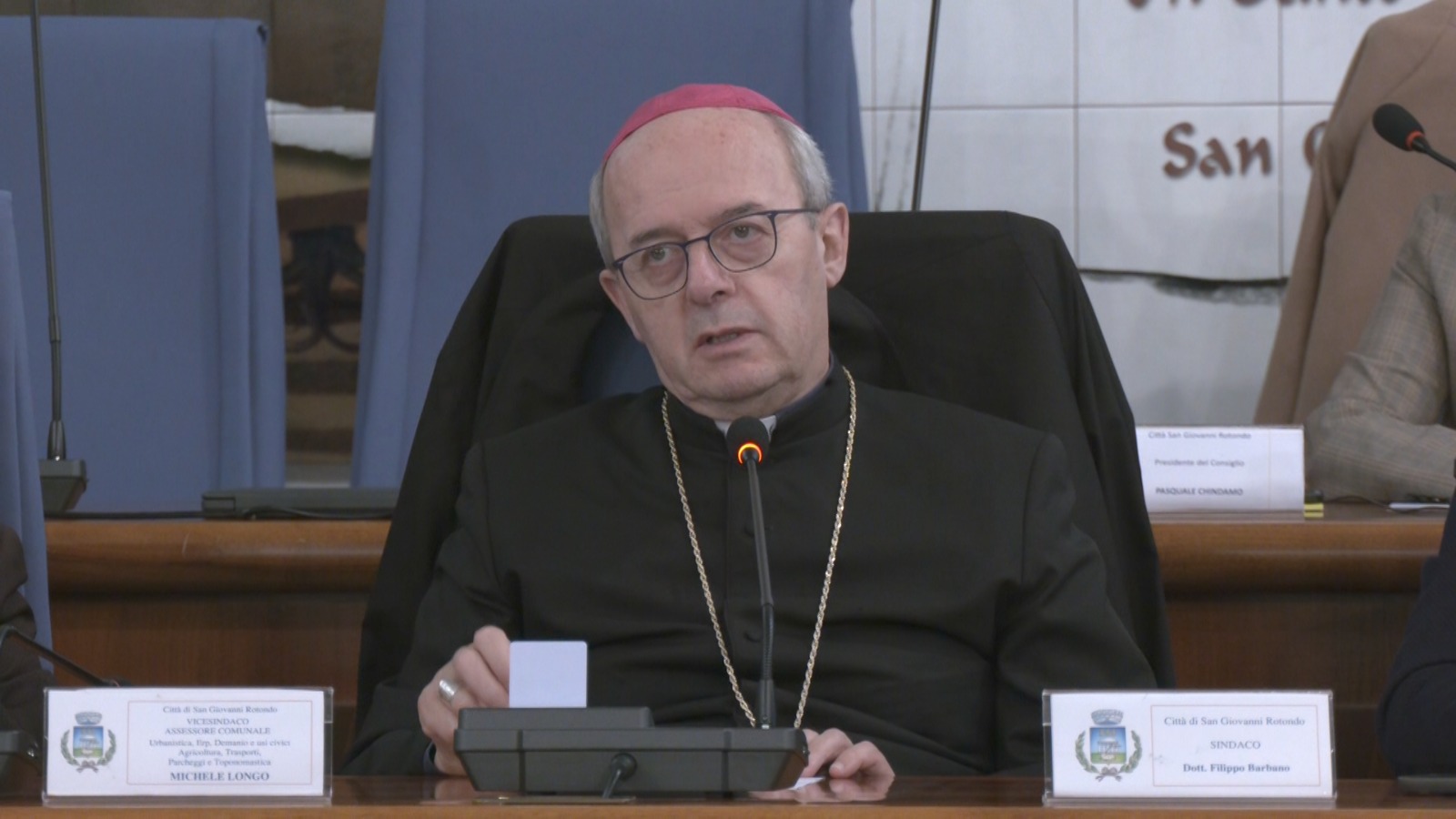 Il primo a intervenire è stato l’arcivescovo di Manfredonia – Vieste – San Giovanni Rotondo, padre Franco Moscone, che ha voluto ricordare come l’origine di questa iniziativa sia legata anche all’impegno di Padre Pio in favore della pace quando, durante la Seconda guerra mondiale, accogliendo un appello di Papa Pio XII, sollecitò e incoraggiò la nascita dei Gruppi di preghiera, al fine di invocare dal Signore la cessazione delle ostilità. Padre Franco ha anche ricordato che il primo convegno, due anni fa, organizzato nel periodo in cui c’era grande attenzione per la guerra in Ucraina, si è di fatto svolto pochi giorni dopo quel sanguinoso 7 ottobre 2023 che ha fatto scaturire i bombardamenti nella striscia di Gaza. L’Arcivescovo ha, infine, voluto evidenziare la perfetta convergenza che si è creata fra le due realtà promotrici del “Poliedro della pace”: quella politica, rappresentata dall’Amministrazione comunale della Città di San Giovanni Rotondo, e quella religiosa, che è costituita dalla Chiesa diocesana, poiché il convegno promuove quei «valori che si trovano sia nel Vangelo che nella Costituzione della Repubblica Italiana e, in particolare, negli articoli 1 e 11».
