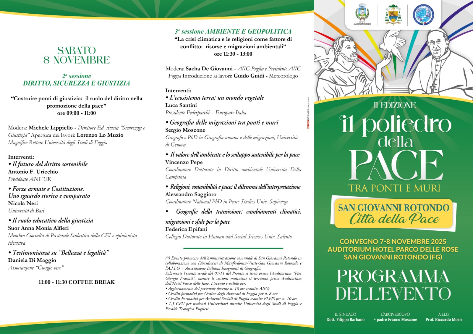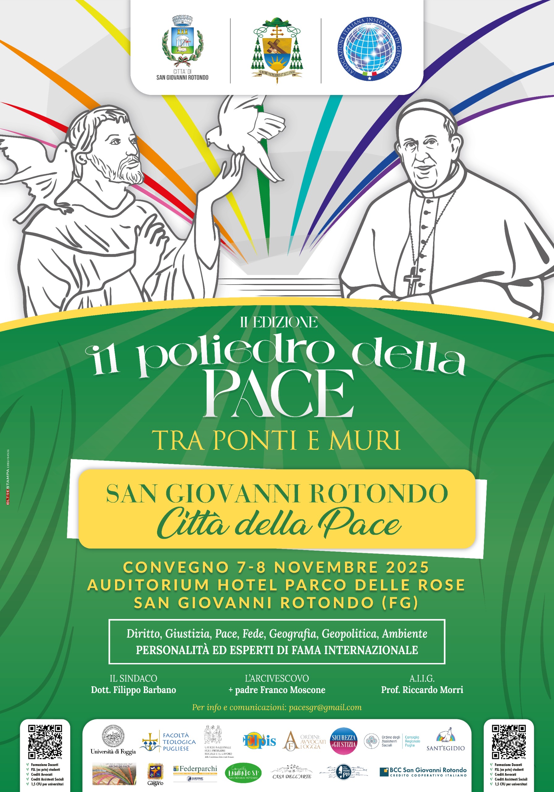 Si svolgerà nei giorni 7 e 8 novembre, a San Giovanni Rotondo, il secondo convegno “Poliedro della pace”, dopo quello che si è svolto nell’ottobre 2023, in occasione del 60° anniversario dell’enciclica Pacem in terris di Papa Giovanni XXIII.